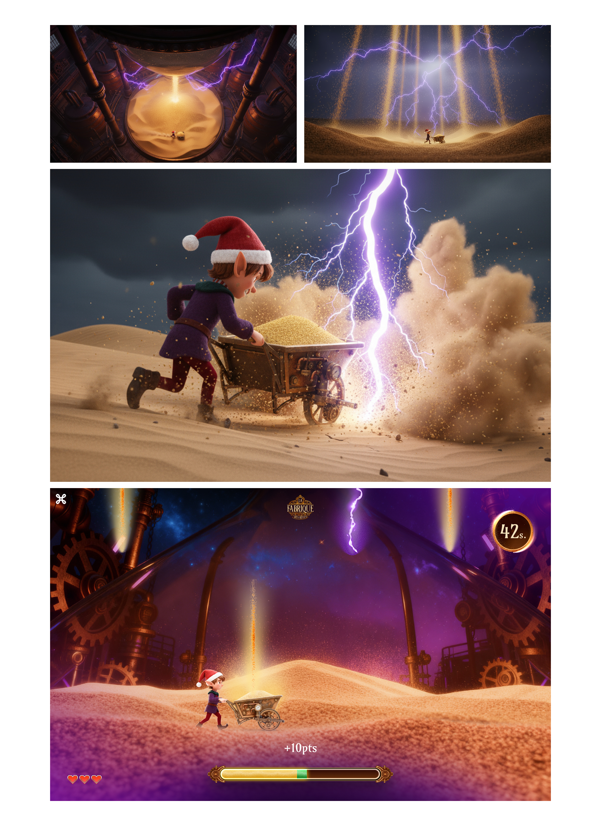 Le film est segmenté en trois parties. Pour découvrir la suite de l'intrigue, l'utilisateur doit intervenir : réparer les engrenages de la tour de l'horloge ou rattraper le sable du temps dans le sablier géant.